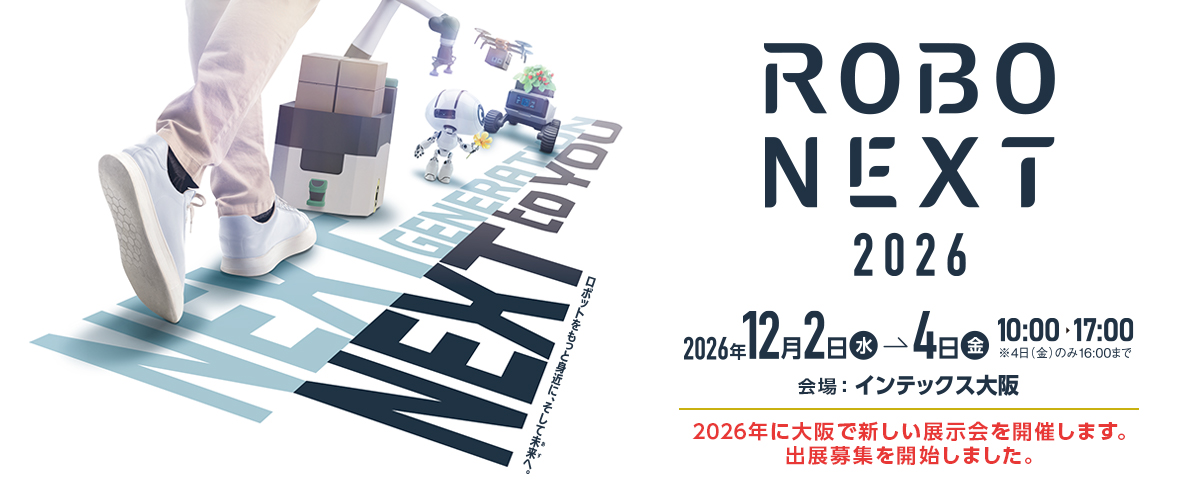 お知らせ2025/12/22新規展示会「RoboNext2026」の出展申込を開始しました。