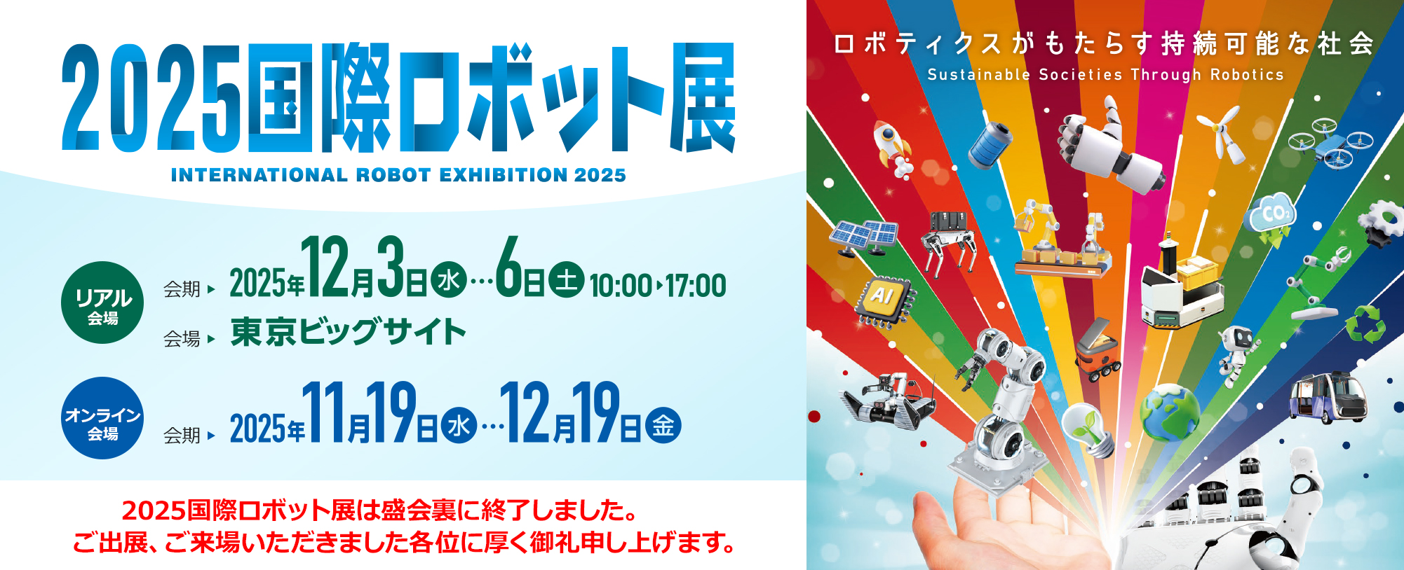 お知らせ2025/12/22新規展示会「RoboNext2026」の出展申込を開始しました。